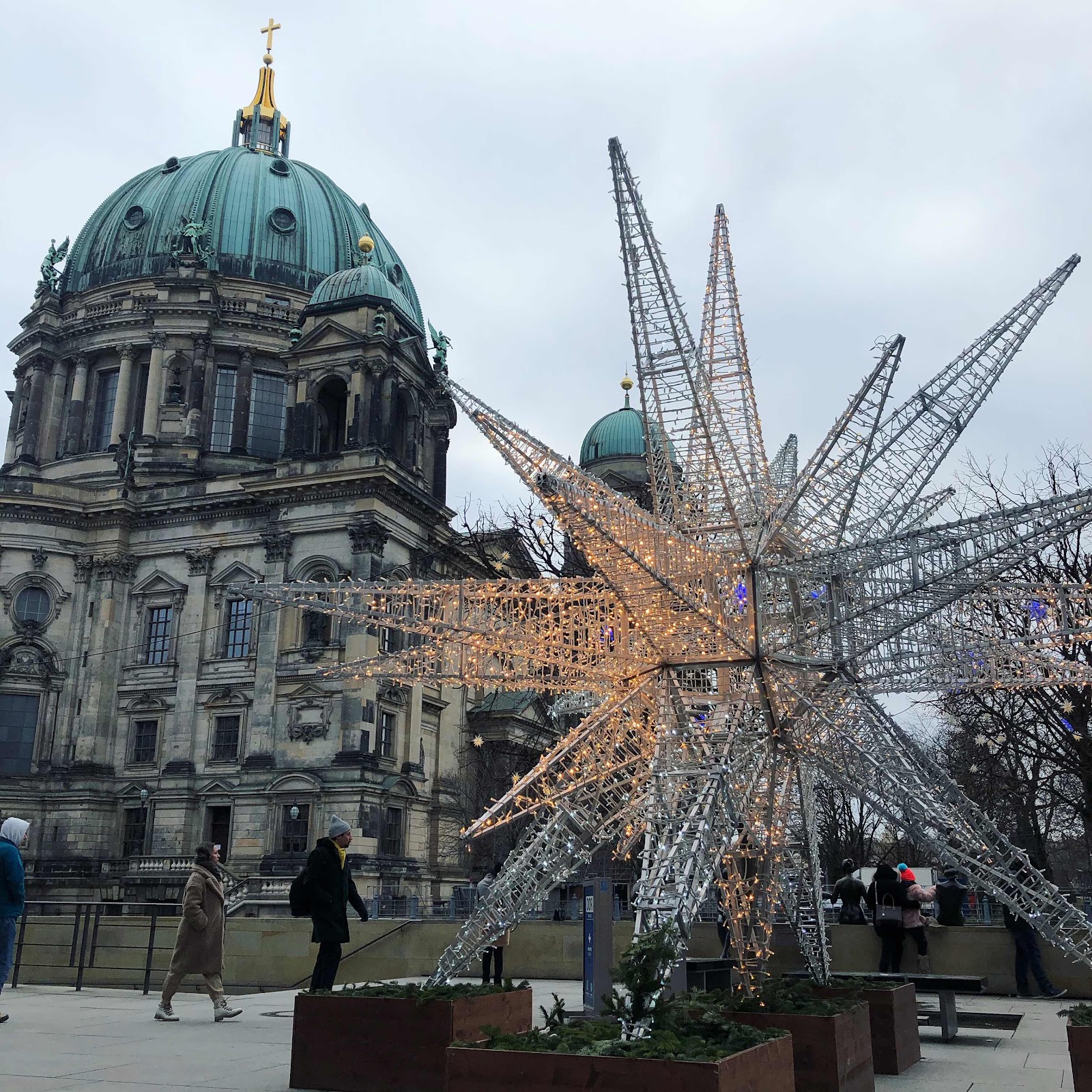 So we've been chilling and catching up since then. At the moment the plan for tonight is to go check out the Christmas lights and market on Kurfürstendamm, but we'll see how that goes... And we did it. Left the apartment again around 5:30pm, walked to the S train station (only a 5 minute walk) and caught the train down to Kurfürstendamm. Actually it was also handy in that we went through the station we need to go to on Wednesday for our train to Munich, so we also know where that is. The lights weren't as impressive as we thought they would be, but the street is the "champs-elysees of Berlin" and I can see why. Full of higher end stops on both sides of a wide road. But not so much food, it turned out, and it was dinner time. We ended up at a German diner type place, which turned out to be exactly what people needed. Mum and Dad are light (soup and nachos, respectively), Bro had a burger, and Richard and I both had a schnitzel. Most of us didn't finish our food though, although it was good, and then we walked back through the Christmas markets on the way back to the train (we didn't buy anything from that market either time though). Back to the apartment, time for a quick tea and a little chocolate, and time for bed! The plan is to get going a little earlier tomorrow!!!